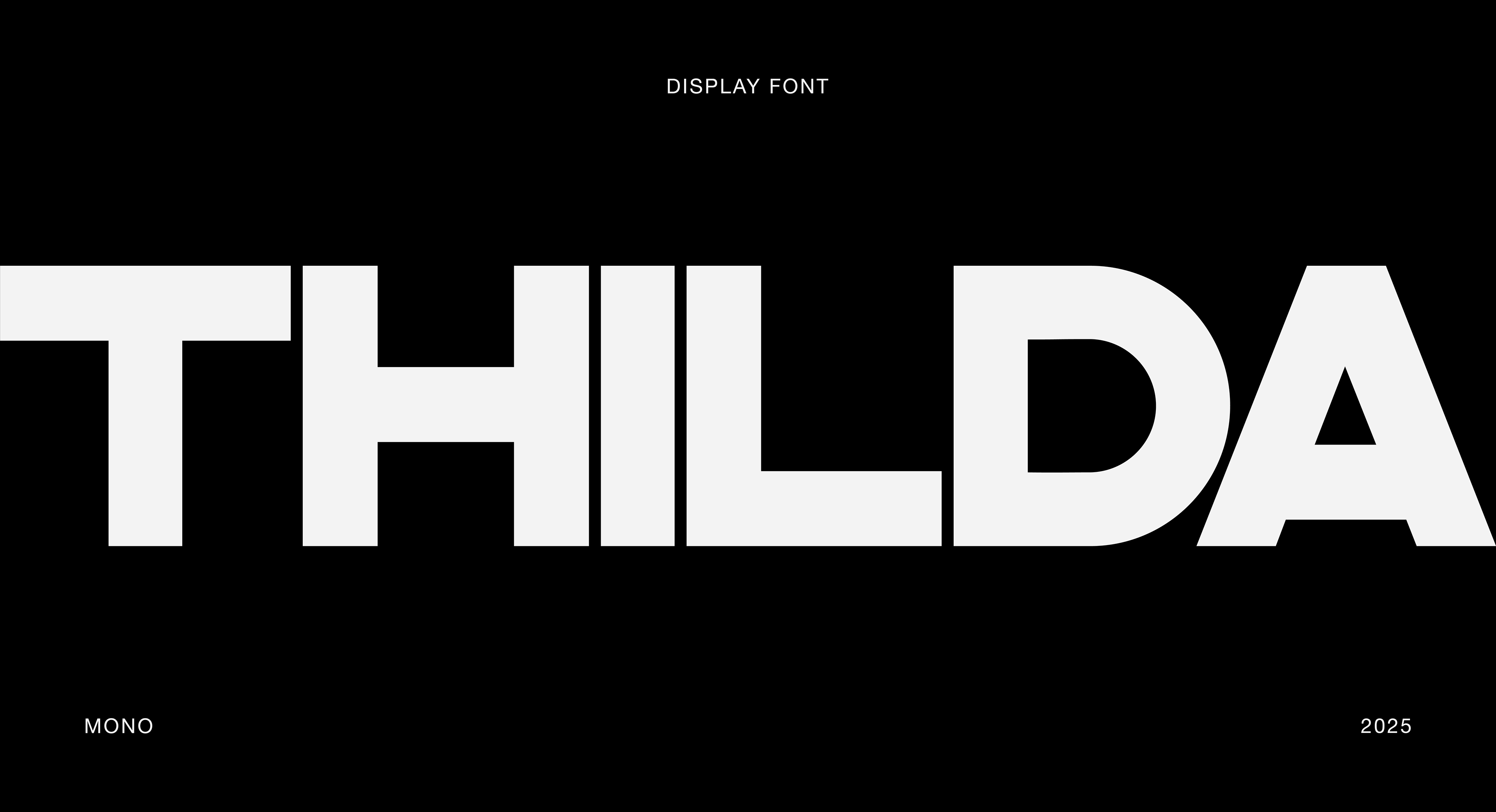 Rather than chasing optical balance, Thilda leans into geometric harmony — where curves, verticals and horizontals obey the same visual logic. The result is a typeface that feels solid, confident, and intentionally mechanical.