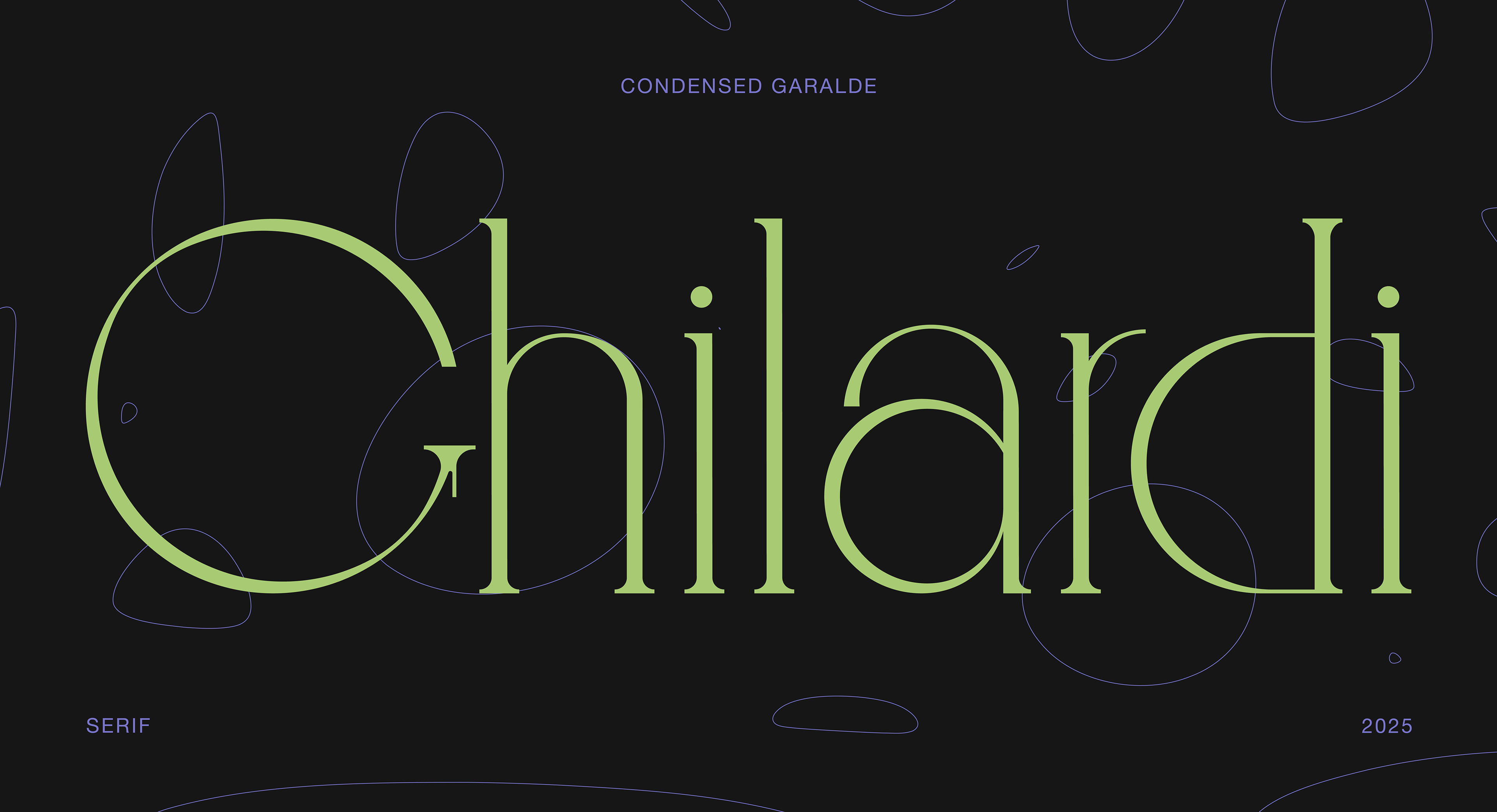 Ghilardi is a condensed garalde serif crafted for elegance and presence. It balances thin, refined strokes with bold, commanding forms, giving round letters a generous, circular fullness that immediately draws the eye. This design embraces a harmonious balance between high-end elegance and relaxed rhythm. Curves gracefully transition into verticals, while serifs introduce a subtle sophistication without feeling overly fussy. The interplay of slender detailing and robust proportions results in a look that is both graceful and confident. Perfect for luxury branding, editorial headlines, packaging, and invitations, this typeface speaks with a voice that is elevated, modern, and effortlessly stylish.